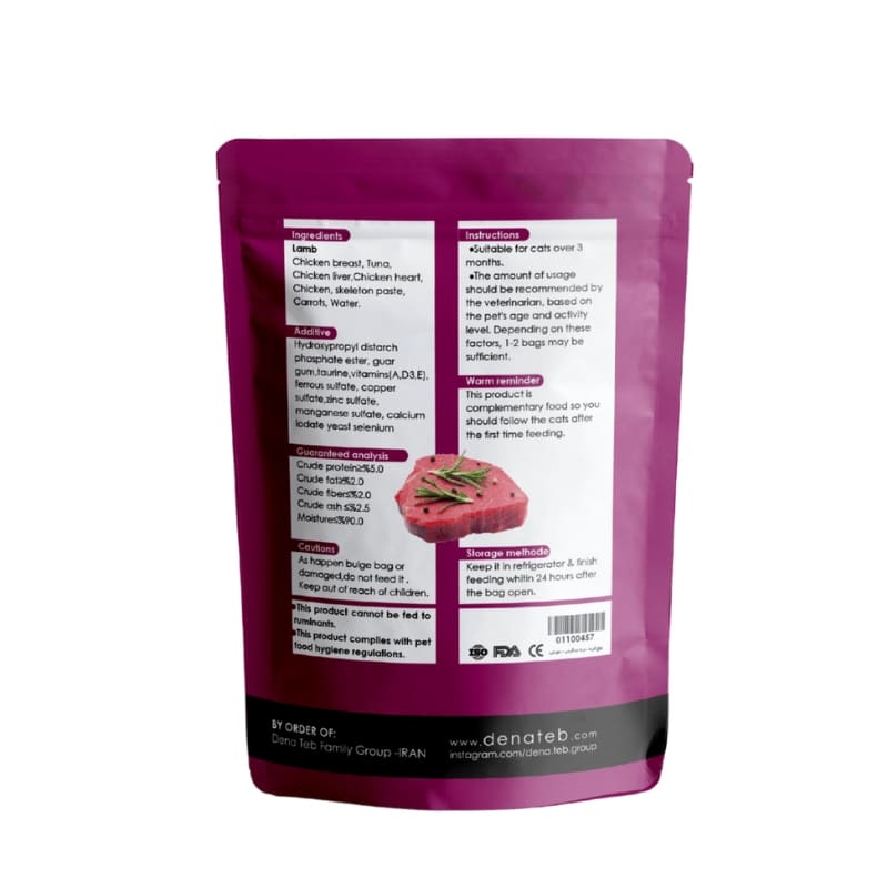 فرمولاسیون این محصول شامل گوشت بره، مواد معدنی طبیعی، تورین و ویتامین‌های حیاتی است که به حفظ سلامت قلب، بینایی، پوست و مو کمک می‌کند. وجود تورین در ترکیب آن برای عملکرد صحیح سیستم عصبی و بینایی حیاتی است.
